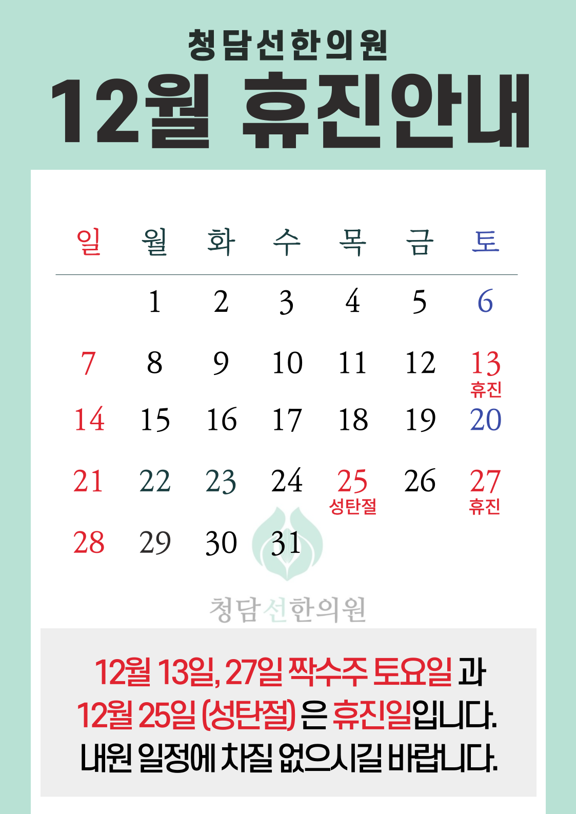 12월 휴진 안내