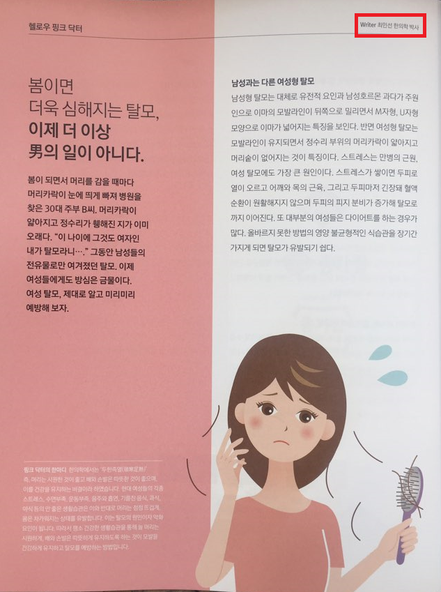2017년 연간기획으로 구성된 "헬로우 핑크 닥터"에 여성분들의 건강관리법에 대한 내용으로 최민선원장님의 칼럼이 계속 연재됩니다.~~