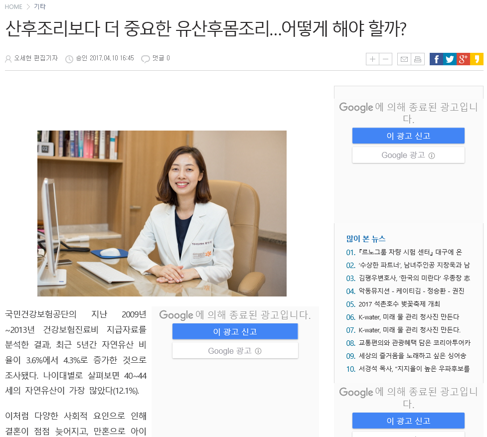인터넷 뉴스, UP KOREA 뉴스에 유산후 몸조리에 대한 최민선 원장님 인터뷰 기사가 실렸습니다.