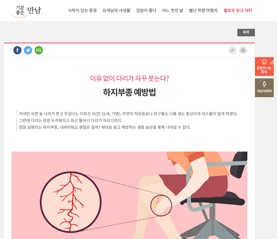 이유없이 붓는 다리, 하지부종 예방법에 대한 이야기들로 구성되었습니다.