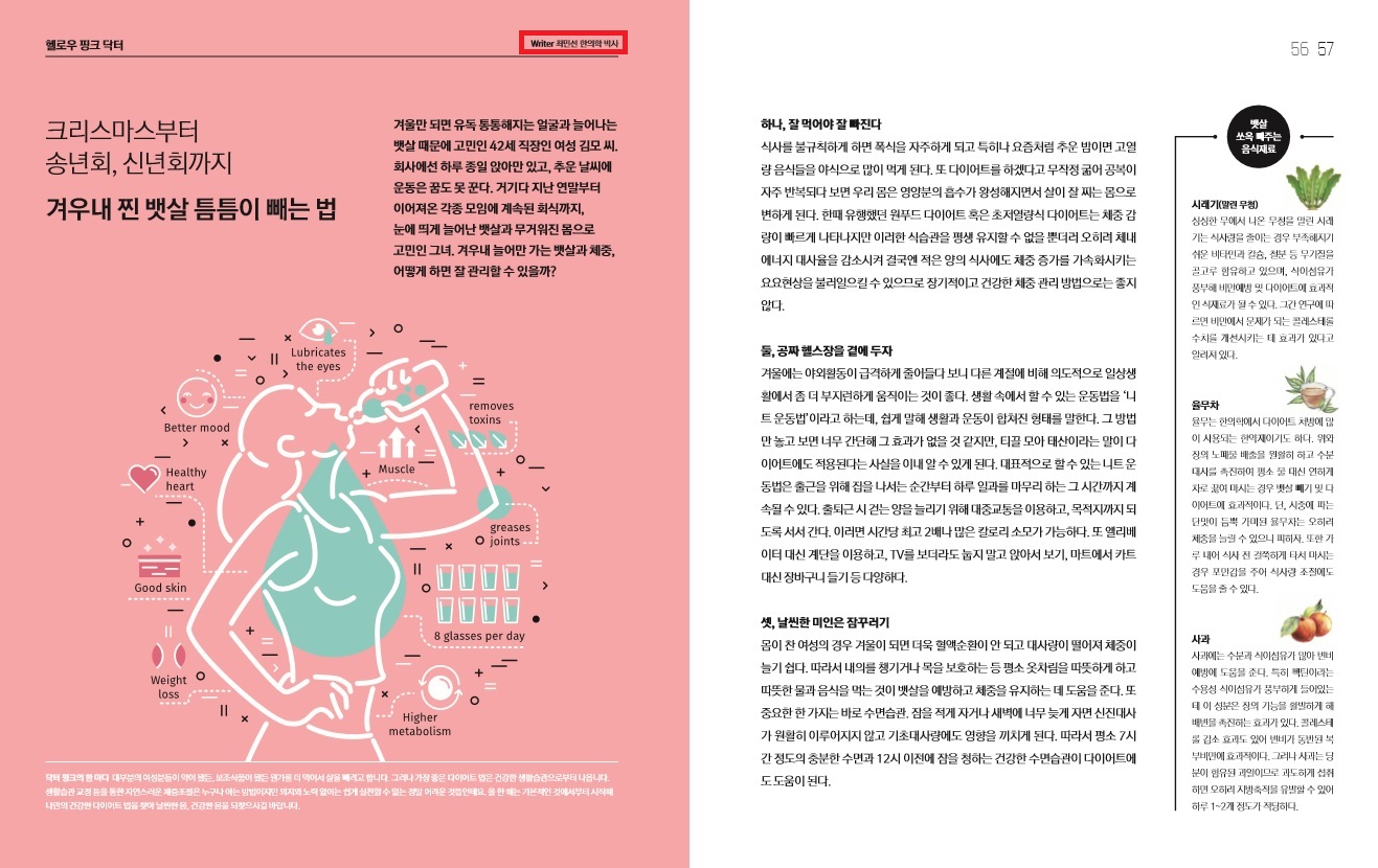 2017년 연간기획으로 구성된 "헬로우 핑크 닥터"에 여성분들의 건강관리법에 대한 내용으로 계속 연재됩니다.~~