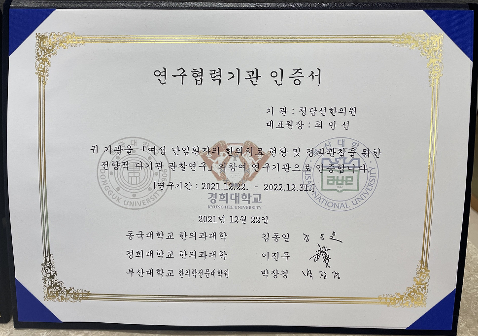 청담선한의원은 항상 한방난임치료 분야 연구에도 늘 앞장서고 있습니다.